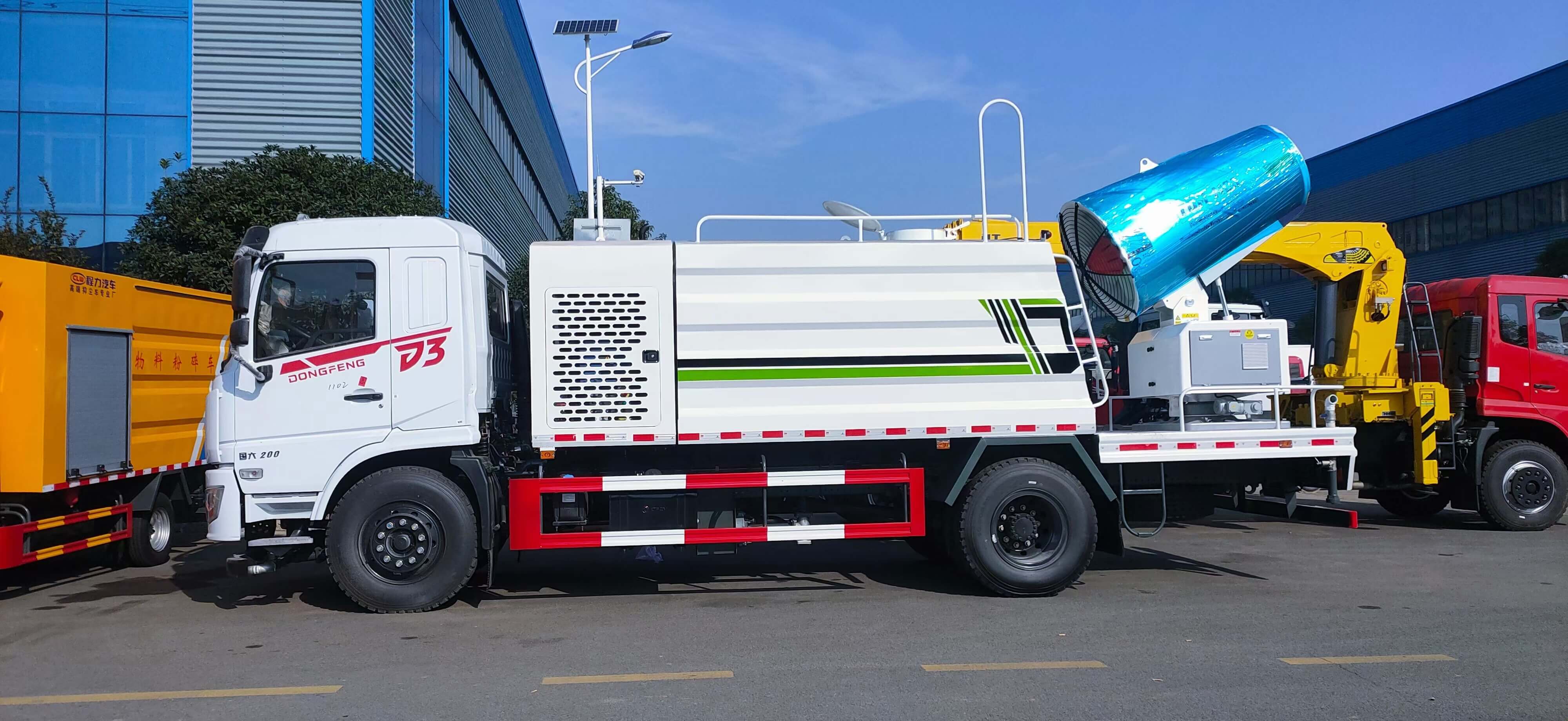 专为高粉尘环境研发的雾炮车,是矿区、拆迁现场、堆料场等区域的环保利器。搭载超远程雾炮机组,可将水雾化至50-200微米颗粒,射程达30-120米,通过“水雾包裹粉尘”原理,从源头抑制扬尘扩散。相比传统洒水车,雾炮车节水率提升40%,且能有效净化悬浮颗粒物,改善局部空气质量。