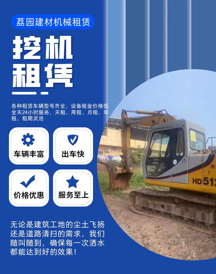 我们的挖掘机租赁服务覆盖从轻型到重型的全场景需求,提供柳工60机、徐工60机、卡特60机、三一60机、加腾120机、加腾200机、日立200机等多品牌多吨位选择,适配市政建设、矿山开采、农田改造等多元化工程场景。每台设备均经过严格质检与维护,确保动力强劲、操作精准,助力客户高效完成土方开挖、物料搬运、破碎作业等任务。